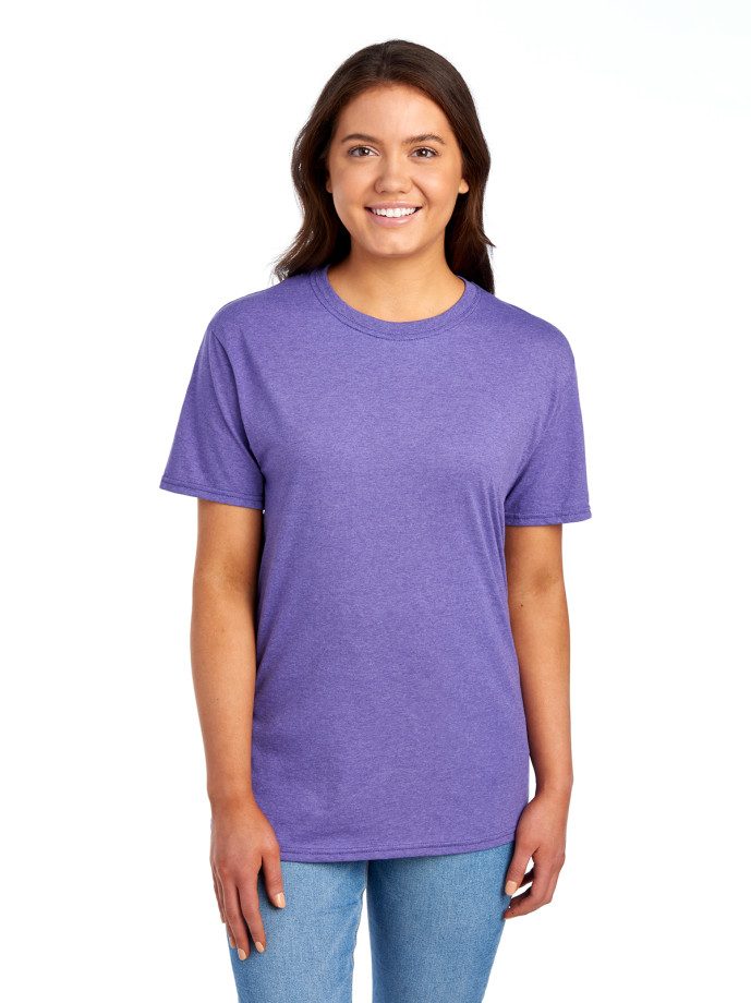 Black Heather, Retro Heather Coral, Retro Heather Green, Retro Heather Pink, Retro Heather Purple, Retro Heather Royal : 50% Cotton / 50% Polyester