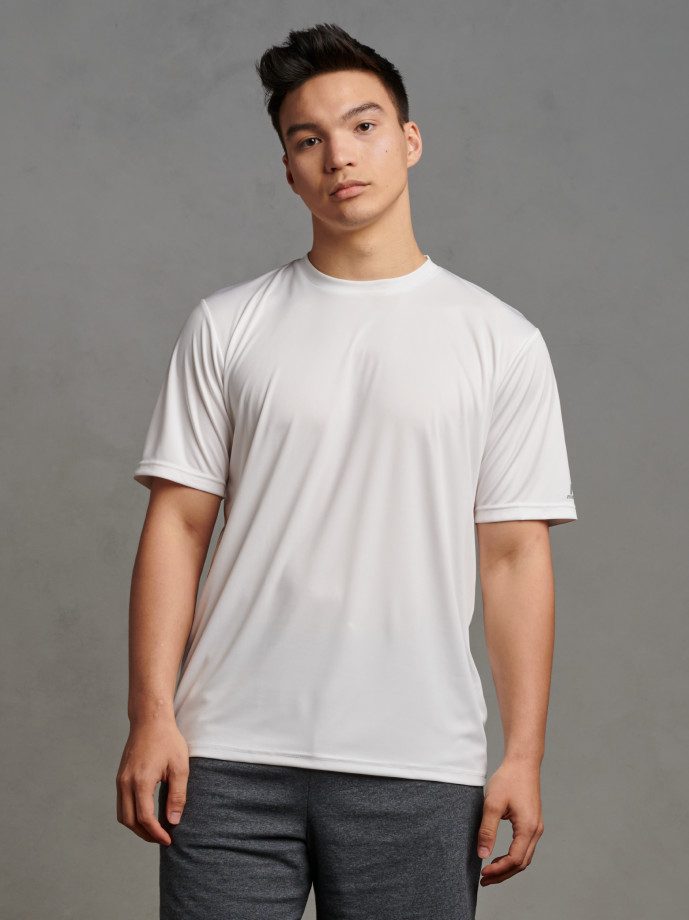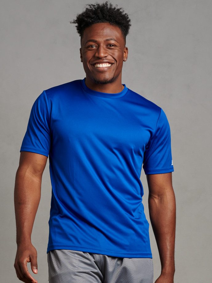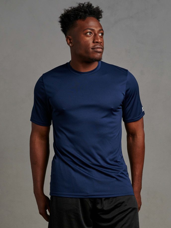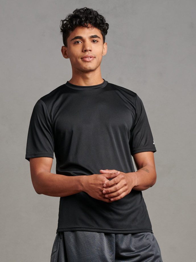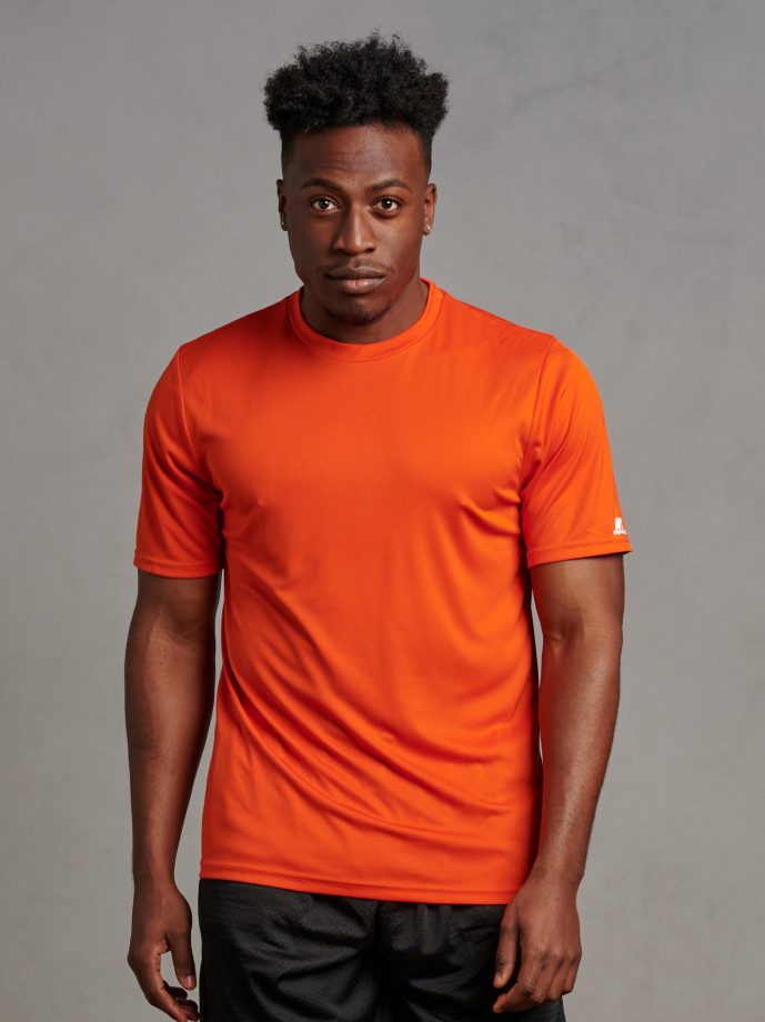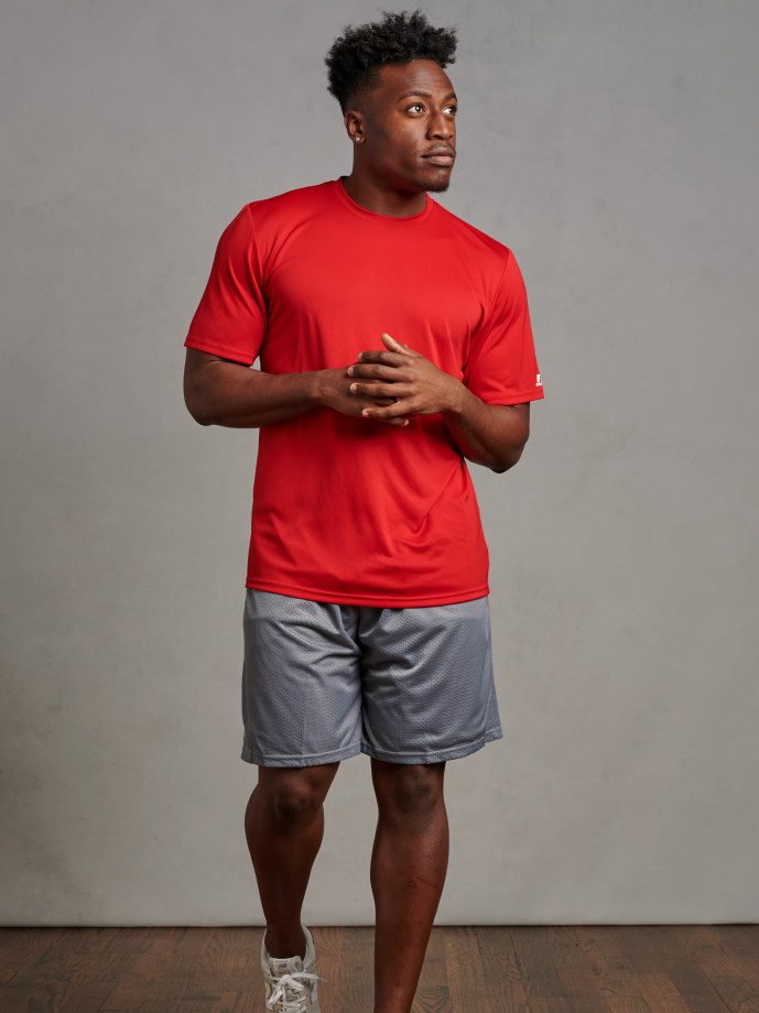 “R-Russell” logo on left sleeve end
